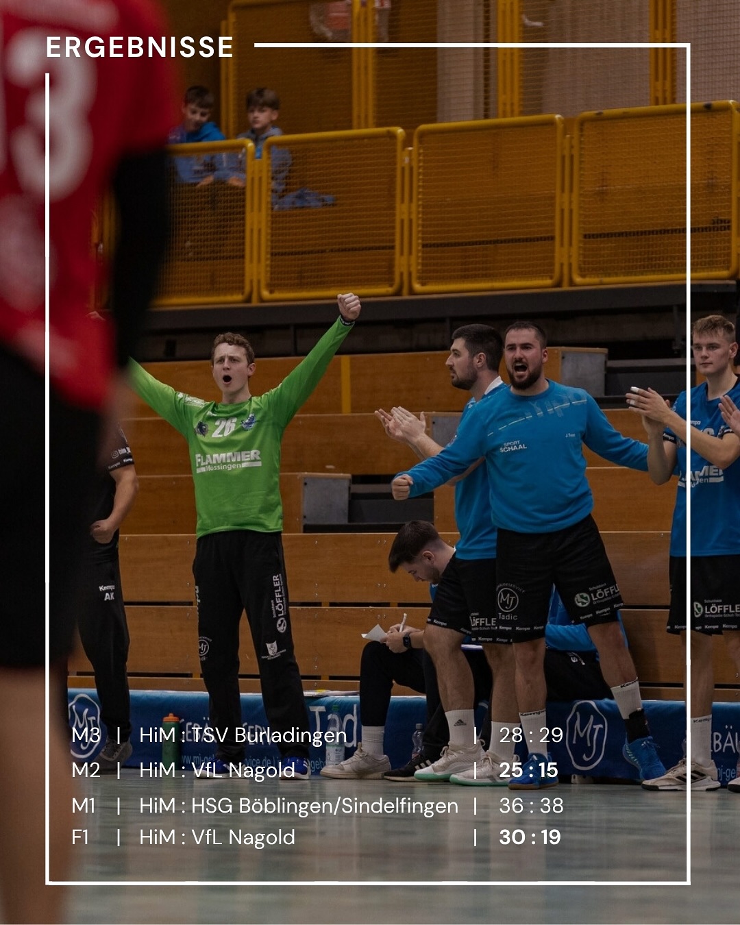 Wir beenden das Wochenende mit einem Sieg unserer F1. Auch unsere M2 konnten mit einem deutlichen Sieg gegen Nagold die ersten Punkte für die Saison 25/26 einfahren.