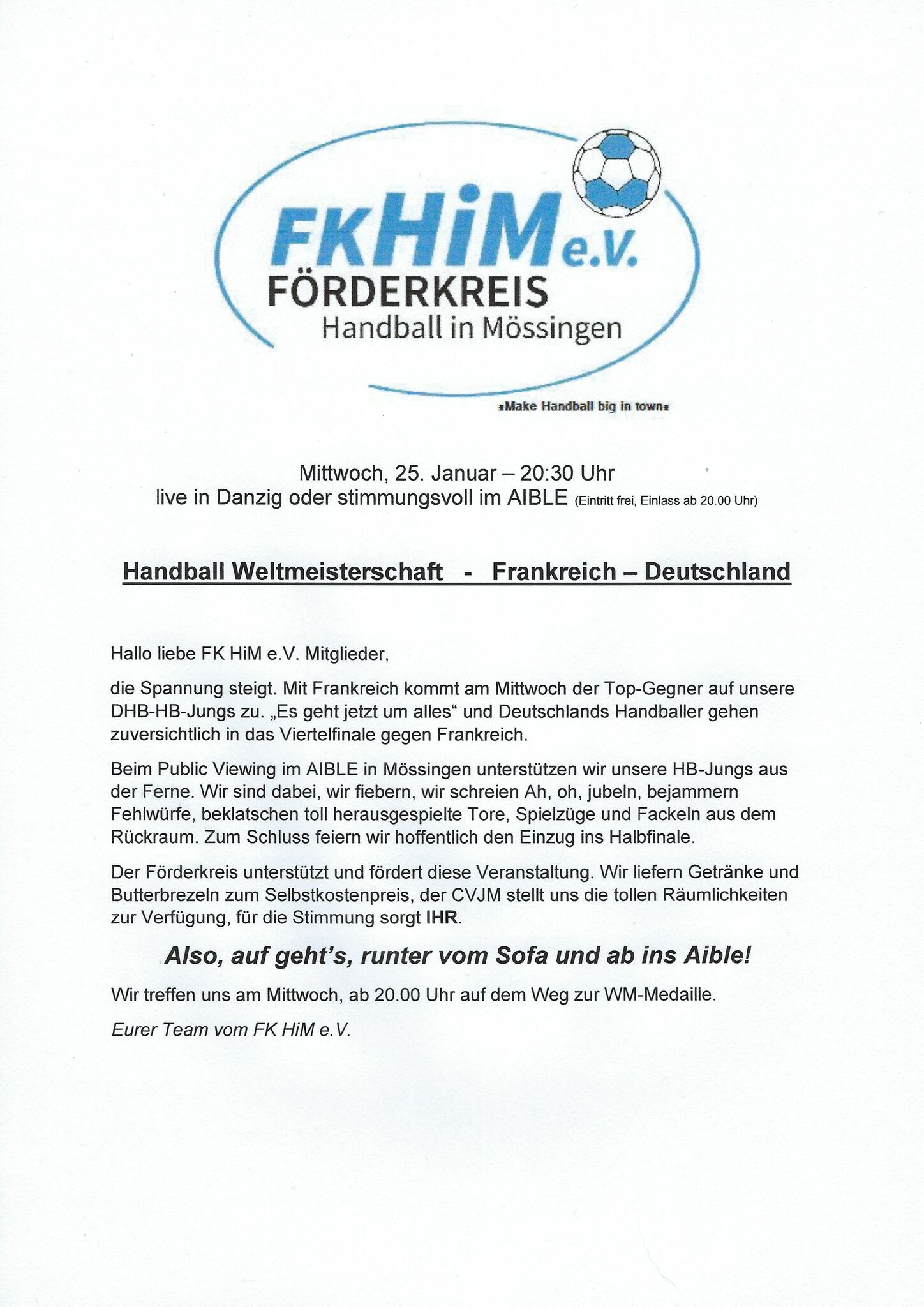 Handball-WM 2023-Public Viewing am Mittwoch 25.01.2023 ab 20:00 Uhr im Aible