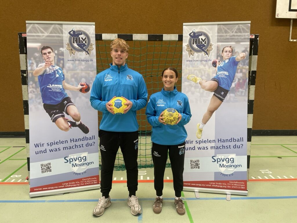 Seit dem 1. September läuft bereits das neue Jahr der Freiwilligendienste und die Handball-Abteilung freut sich sehr, in diesem Jahr mit Emma Spresny und Janis Kromer sogar zwei Freiwillige in ihren Reihen begrüßen zu dürfen. Das ist ein Novum für die Abteilung und stellt auch Herausforderungen. „Wir haben überhaupt kein Problem, den beiden Arbeit zu besorgen, bei 25 Mannschaften und 300 Kindern und unseren vielfältigen Aktivitäten mit Zusatztrainings und den Schulkooperationen findet sich genug zum Schaffen, allerdings ist die Koordination mit zwei Freiwilligen doch eine neue Herausforderung, der wir uns gerne stellen“ zeigte sich FSJ-Beauftragter Florian Seidel vorsichtig vorfreudig bezüglich des neuen Freiwilligen-Jahres. Emma und Janis dankten es mit großem Engagement in den ersten zwei Dienstwochen: Sommerferienprogramm, Handball-Camp, Athletik-Training, Jugend-Training, Textilien-Aktion, Öffentlichkeits-Arbeit, die Liste der Aktivitäten ist mit diesen Dingen noch nicht beendet. Abteilungsleiter Friedemann Bader ist auch dankbar über junge Meinungen im Hirn und Herz der Abteilung, dem Orga-Team: „Auch in unseren regelmäßigen Treffen zur Leitung der Abteilung sind die Beiden wenn möglich dabei und es ist sehr hilfreich, einen frischen Wind und unvoreingenommenen Blick auf die Arbeit in der Abteilung zu bekommen“. Im weiteren Verlauf des FSJ stehen neben Lehrgängen bei der württembergischen Sportjugend auch der Erwerb der Handball C-Lizenz auf dem Programm, perspektivisch werden die beiden auch ein eigenes Projekt an den Start bringen und sich, wie Freiwillige davor, auch im Gesamtverein einbringen. In diesem Sinne steht einem abwechslungsreichen Jahr überhaupt nichts entgegen, herzlich willkommen im HiM, Emma und Janis!