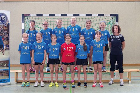 hintere Reihe von links nach rechts: Ava Schelling, Celine Kubowski, Julia Rudolph, Sarah Huber, Leni Jerosch, Lenia Nebe vorne von links nach rechts: Mia Löhnert, Angelina Döring, Victoria Brost, Jonna Ehmann, Zoe Ruoff, Anneke Rathfelder, Trainerin Claudia Schmidt es fehlt: Trainerin Johanna Wagner