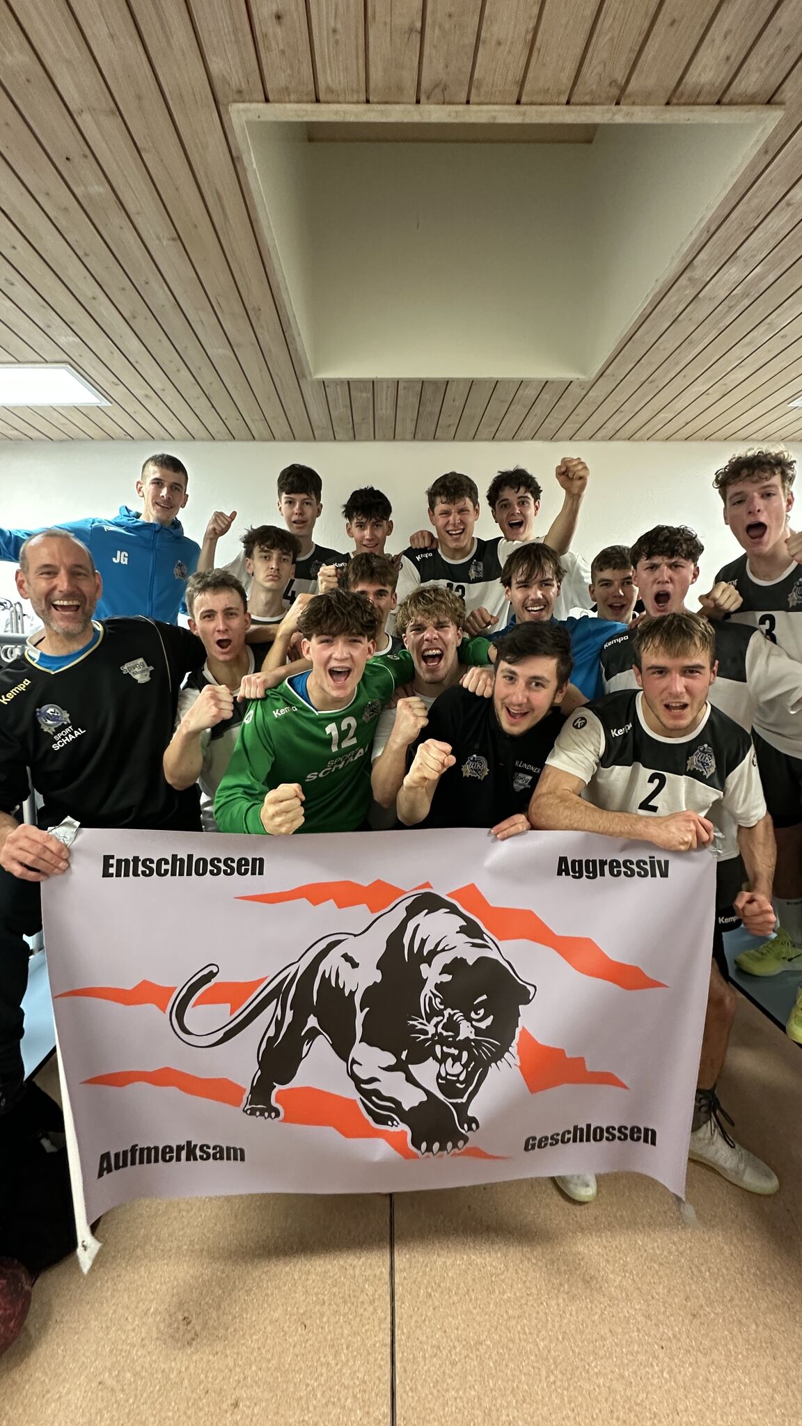 Die mjA gewinnt das letzte Spiel des Jahres und steht nun 18:0(!). Im Rückspiel gegen die SG Ober-/Unterhausen konnten die Black Panthers ihre Stärken selbstbewusst auf die Platte bringen. Trotz spannender Anfangsphase zeigte man sich in der Schlussphase ausdauerstark und es gelang so der Auswärts-Sieg mit 19:26 (10:10).