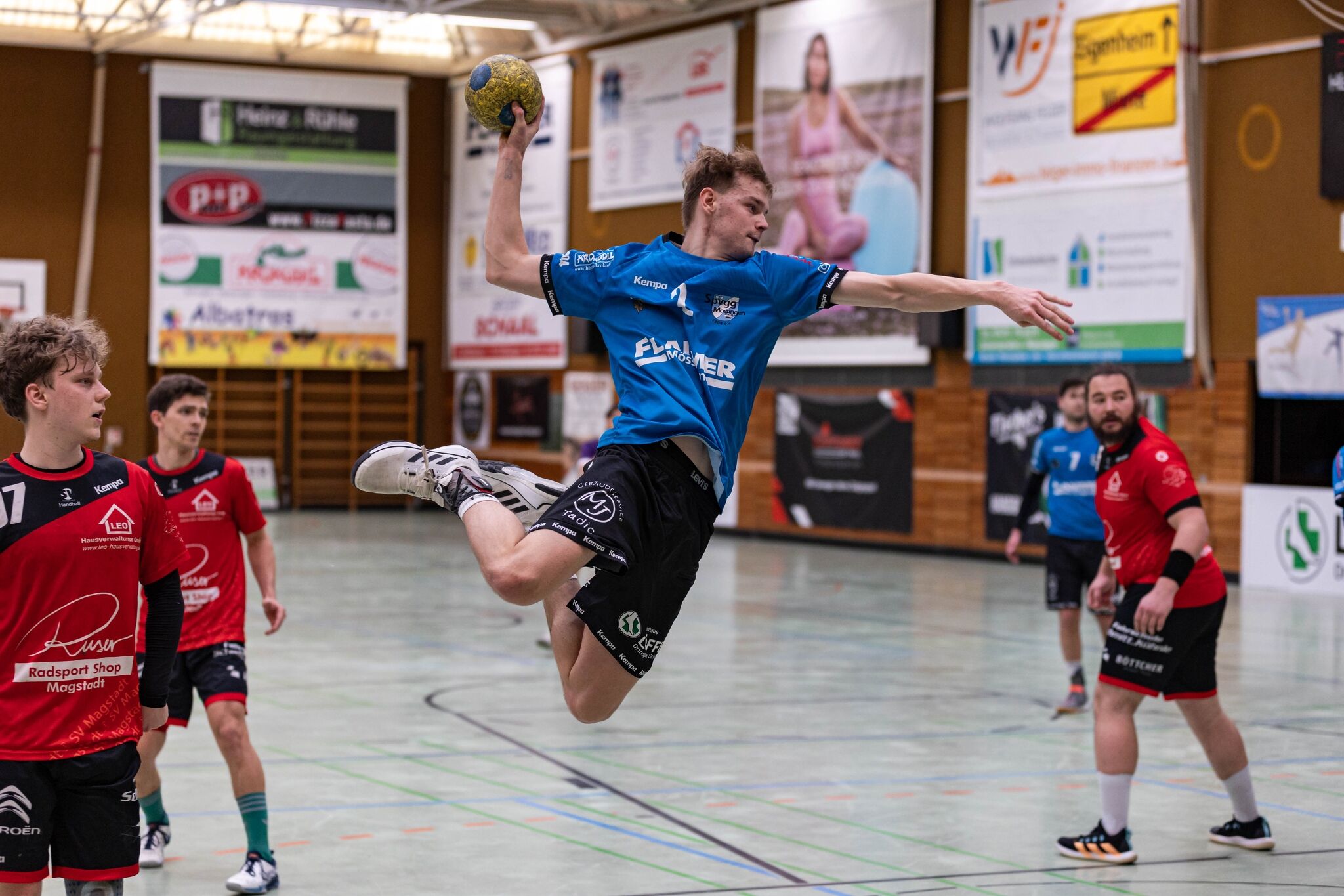Dabei legten die Blauen aus dem Steinlachtal eigentlich gut los. Nach dem nervösen Beginn der Begegnung, war es die Mössinger Mannschaft, die das Heft des Handelns in die Hand nahm. Das Team der Dritten setzte sich gut ab und agierte zunächst in der Defensive schön aggressiv. Beim Stand von 5:12 für Mössingen, war man auf Seitens der Gastgeber gezwungen, die erste Auszeit der Partie zu nehmen. Diese Auszeit zeigte Wirkung, da die Einstellung vom SV Magstadt auf einmal eine ganz andere war. Tor um Tor holten die Gastgeber auf und so ging es mit einer zarten 2 Tore-Führung, mit 13:15 für die Spvgg in die Halbzeitpause.