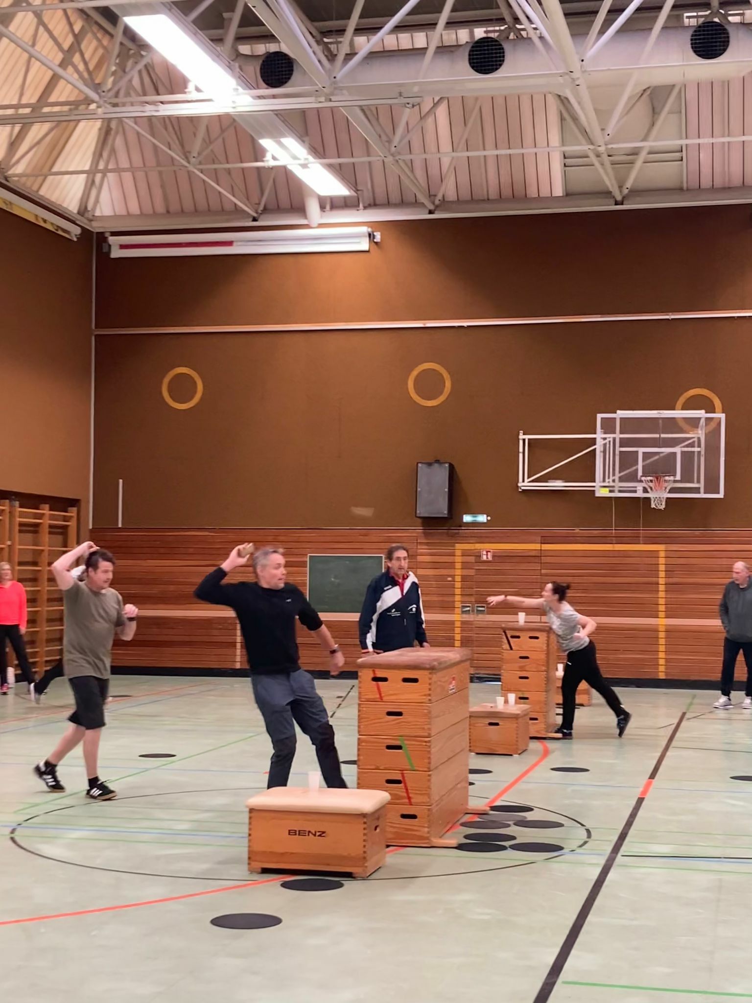 Am vergangenen Freitag fand eine spannende und für die Teilnehmer hochinteressante Veranstaltung in der Steinlachhalle Mössingen statt: Über 20 Grundschullehrer*innen ließen sich in einer Kooperationsveranstaltung des DHB, HVW, der Spvgg Mössingen sowie des QG Mössingen fortbilden: Die kindgerechte Vermittlung des Handballspiels in der Grundschule stand auf dem Programm. Als Referent stand zunächst Florian Seidel am Computer, in einem kurzen Vortrag standen die „Big 5 des Kinderhandballs“ auf dem Programm, außerdem wurde auf die DHB-online-Akademie eingegangen und die vom DHB vorgeschlagenen Spielformen kurz in der Theorie besprochen. Schnell ging es dann in die Halle, wo die 6c des Quenstedt-Gymnasiums anderthalb Stunden lang unter der Führung von Herrn Seidel an die Umsetzung ging, die teilnehmenden Lehrkräfte dankten den Einsatz am Ende mit einem schönen Applaus. Nach einer diskussionsreichen Mittagspause (Franka Axmann und Charly Schweiker servierten feinste Maultaschen) ging es in Theorie und Praxis mit der Spielreihe „Aufsetzerball“ weiter. Mit Armin Eisele und Hans Hahn waren die Väter des württembergischen Kinderhandball-Konzepts am Start und sie brachten die Lehrkräfte ganz schön ins Schwitzen: Mit viel Freude, sehr lautstark aber immer auch mit eigenen Diskussionsbeiträgen wurde die Spielreihe durchgeführt, auch am Ende dieser Praxiseinheit gab es einen lauten Applaus. Unterm Strich konnte stand eine tolle Veranstaltung und viele zufriedene Grundschullehrer – die das DHB-Konzept mit Sicherheit in ganz Württemberg in die Grundschulen tragen werden. Die Handballabteilung bedankt sich bei tollen Teilnehmer*innen und bei allen Kooperationspartnern für einen tollen Tag!