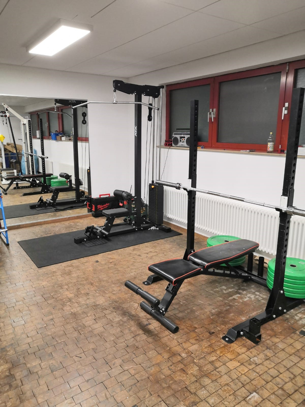 Vergangene Woche erfolgte die erste Lieferung an neuen Geräten für den renovierten Kraftraum in der Steinlachhalle. Etwa 500 kg wogen die neuen Foltergeräte, die durch eine Spedition angeliefert wurden. Bereits am Samstag erfolgte der Aufbau einer Kraftwand, die modular, nach dem Baukastenprinzip entwickelt wurde. Hier kann insbesondere mit Langhanteln trainiert werden. Alle Anbauteile, an den robusten Metallpfosten, können individuell abgesteckt werden, je nach Größe und Kraft der Sportler. Zudem kann innerhalb kurzer Zeit von Kniebeugen über Bankdrücken zum Kreuzheben gewechselt werden. Dies ermöglicht Handballern aller Altersgruppen ein vielfältiges Trainingsangebot.