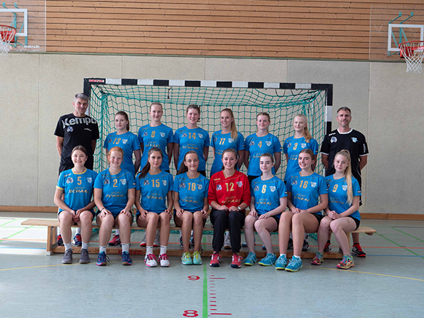 Hintere Reihe von links nach rechts: Trainer Jens Arlinghaus, Myrrha Grünwald, Ulla Schäfer, Nele Wagner, Nina Werner, Jenny Bruckdorfer, Lea Arlinghaus, Trainer Stephan Werner Vordere Reihe von links nach rechts: Mieke Wagner, Johanna Budde, Lina Luz, Leonie Wurster, Mara Buck, Virginie Huber, Anesa Dubinuvic, Luca Lahaye Es fehlen: Alisha Claes, Emma Henselek, Lina Peplau, Trainer Walter Föll